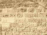 Panoramic stony wall. Weathered right stony blocks