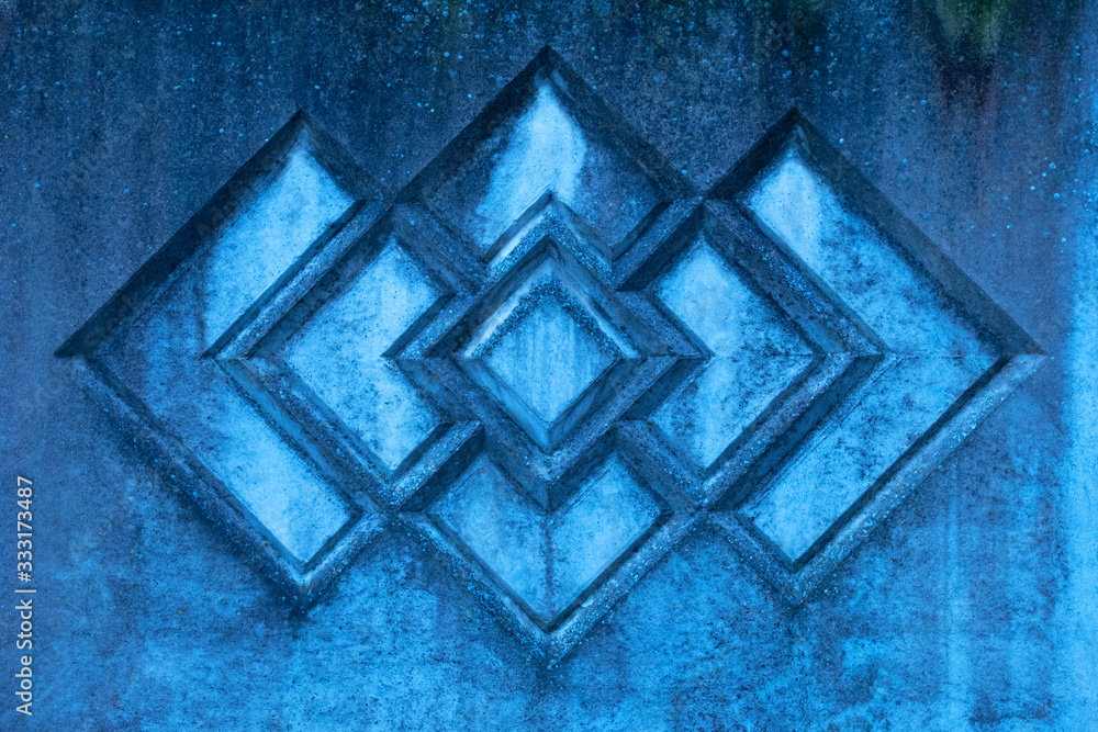 Dark blue abstract geometric background. Triangle and square pattern. Beautiful creative polygonal design. Old stone wall decoration element. Close up