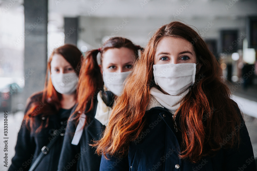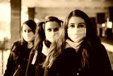 Coronavirus virus in 2020 flu, epidemic. Group of women in a protection mask in city