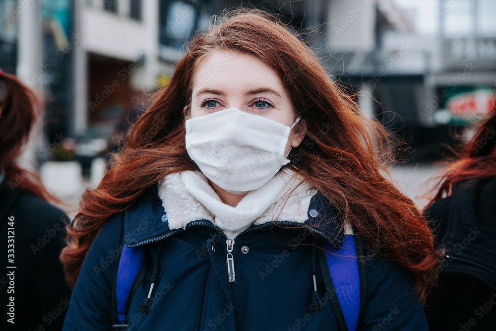 People in medical protective masks on street in city. COVID-19 Pandemic Coronavirus