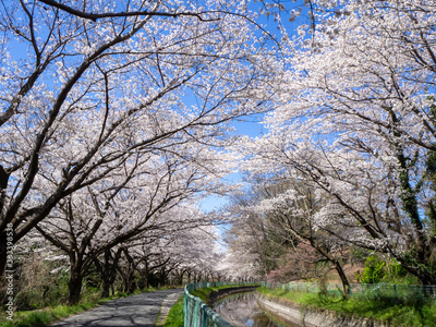 埼玉県見沼田んぼの満開のソメイヨシノの桜並木