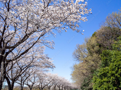埼玉県見沼田んぼの満開のソメイヨシノの桜並木