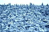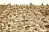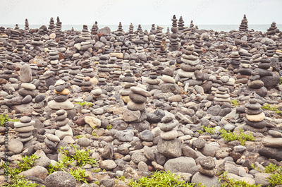 Stone stacks on a beach, color toning applied.