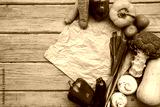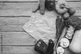 Top view of various fresh organic vegetables with a blank brown paper bag