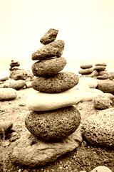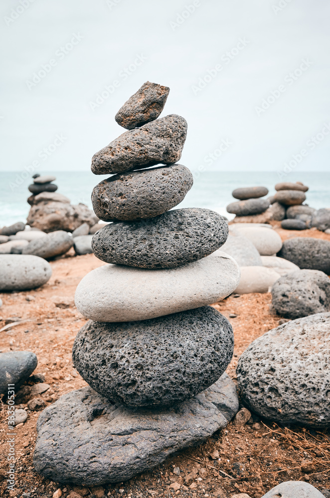 Stone stack on a beach, balance concept, color toning applied.