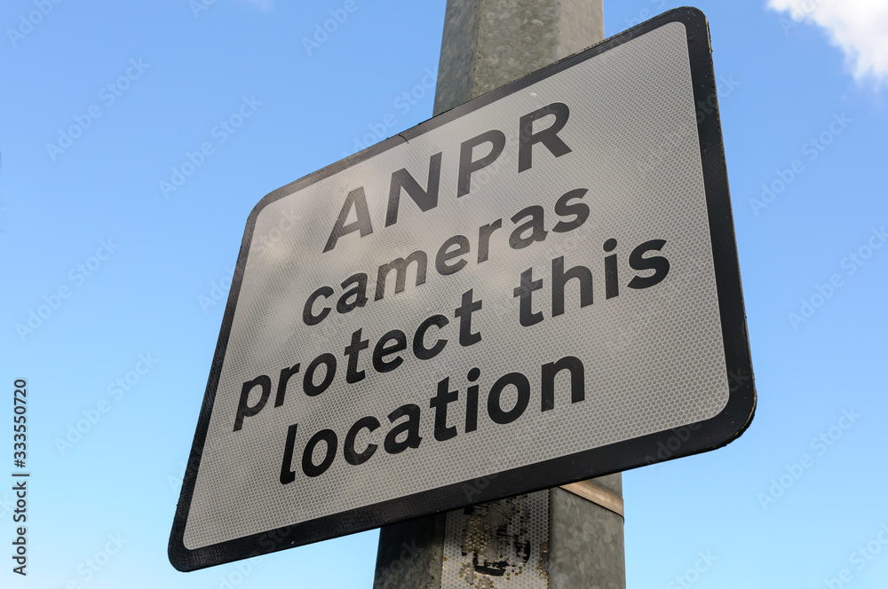 Sign in an industrial area warning that Automatic Number Plate Recognition (ANPR) cameras are in use to protect this location.