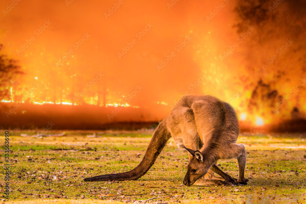 Kangaroo Island, Australia, South Australia- 2019: Kangaroo in the Australian bush during the bushfire.