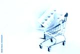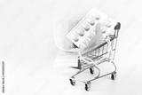 Medical mask in shop trolley on white background. Sale of medical masks. Coronavirus concept. 2019 nCoV.