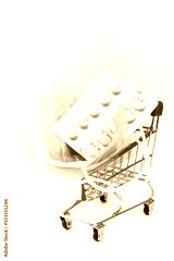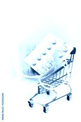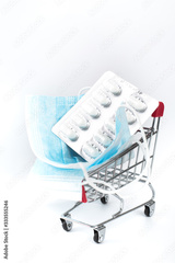 Medical mask in shop trolley on white background. Sale of medical masks. Coronavirus concept. 2019 nCoV.