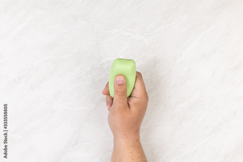 Hands holding soap showing washing hands as battle agains virus corona covid19