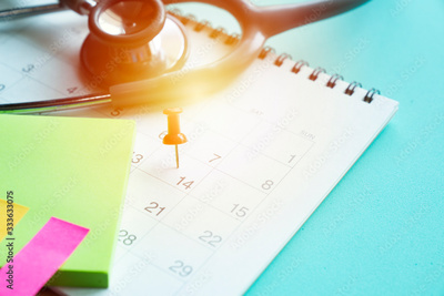 Close up of calendar and stethoscope for Covid-19, Corona Virus epidemic worldwide that people must do social distancing for 14 days concept
