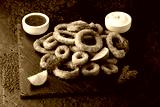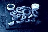 Oven baked breaded calamari rings served with lime wedges, sweet chilli sauce and mayonnaise