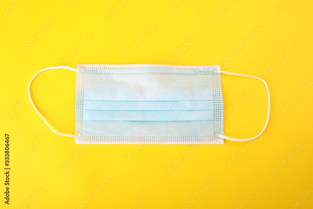 A one-use surgical mask isolated on yellow background