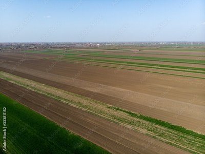 Aerial view from drone of agriculture fields ready for seeding
