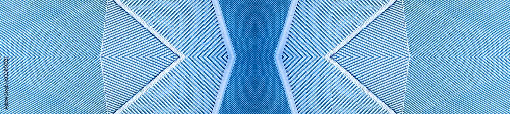 underside panoramic and perspective view to steel blue glass high rise building skyscrapers, business concept of successful industrial architecture