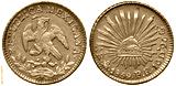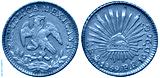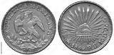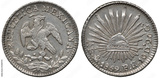 Mexico Mexican early date silver coin 1 one real 1859, eagle on cactus with snake in beak, radian Liberty cap in center, denomination and date below,
