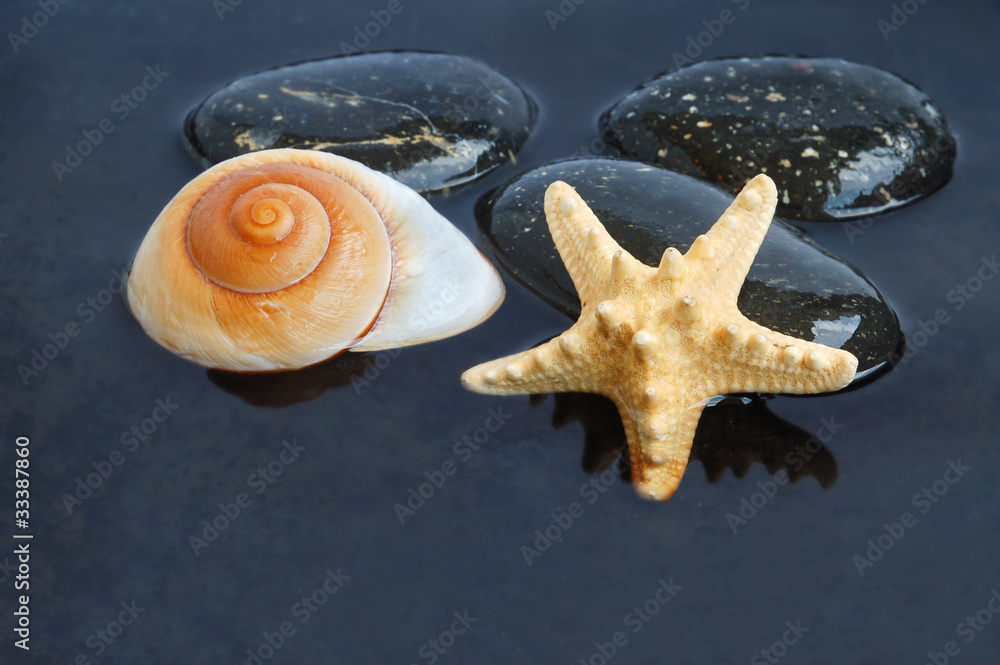 Seashells in black water