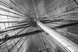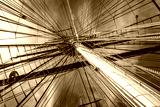 Old ship mast and sail ropes closeup
