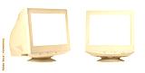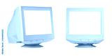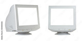 Old retro CRT monitor display with blank white screen isolated on white background.