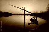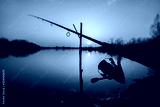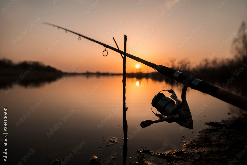 Carp fishing rod isolated on sunset. fishing rod silhouette