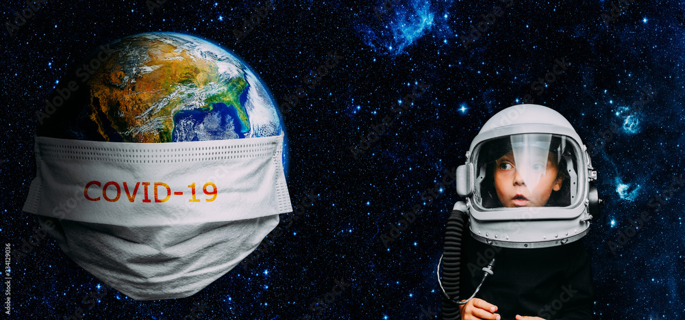 The whole earth is quarantined, the earth is wearing a mask Coronavirus and Air pollution pm2.5 concept. COVID-19 Elements of this image furnished by NASA