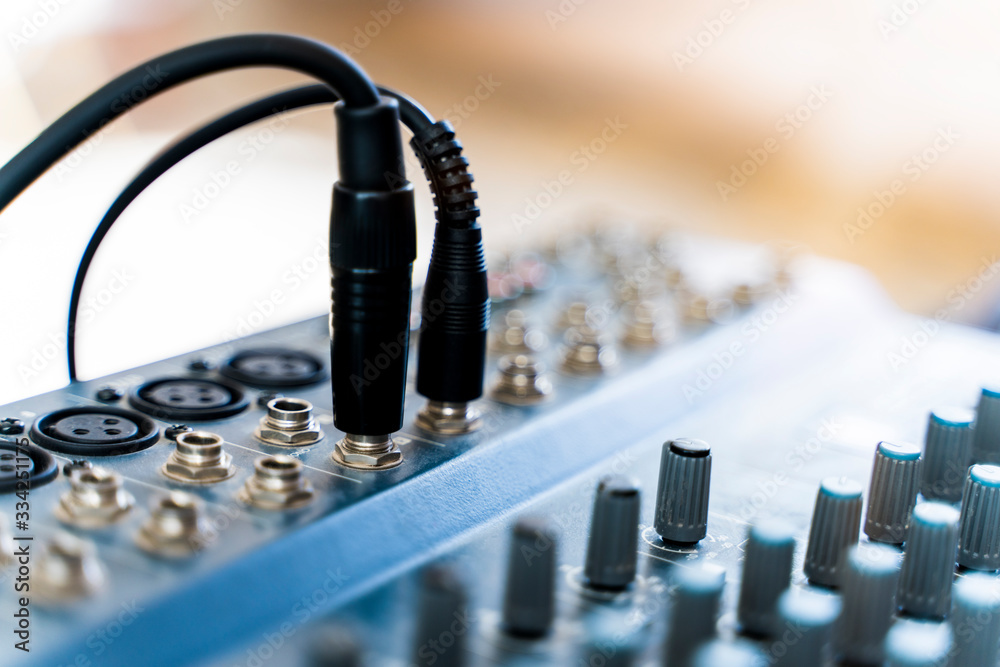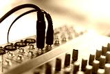 Professional music production in a sound recording studio, mixer desk