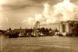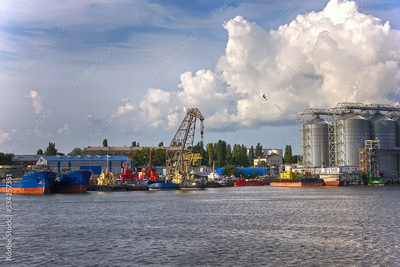 industrial designs in port. import and export business of a logistics company. Industry and transport concept - image