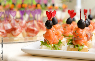 appetizers with salmon and olives, buffet, Banquet