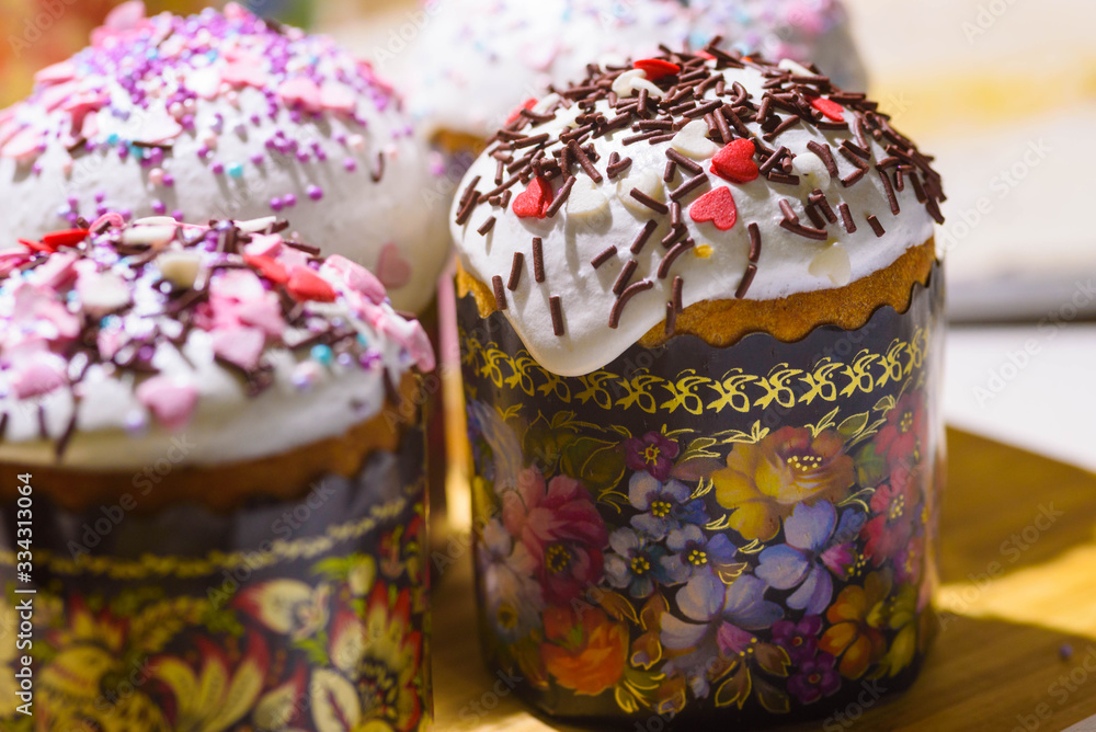 Easter sweet cakes with crumbs and frosting