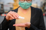 Cropped shot of woman washing hand by hand sanitizer. Hand sanitizer is Instant gel contains at least 60 % alcohol used to decrease infectious or kills germs, bacteria even more coronavirus
