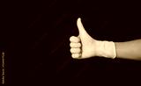 Doctor hand with glove showing like gesture or thumb up as approval, accept or done concept
