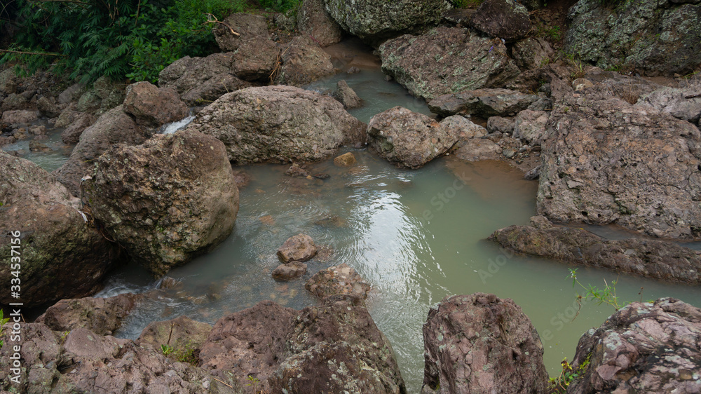 Cliffs with soft waterfalls in the hills