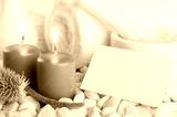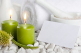 Spa set with candles and blank paper card with copyspace