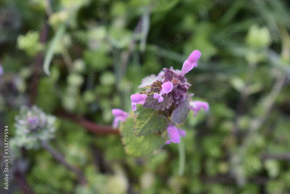 Blooming pink grass in the field.