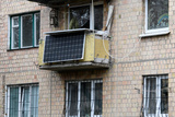 The solar battery panel mounted on the balcony of an apartment building in Kyiv, Ukraine. March 2020