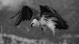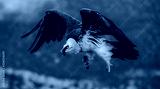 Bearded Vulture or Lammergeier, Gypaetus barbatus, flying bird on the rock mountain. Rare mountain bird, fly in winter, animal in stone habitat, with food on legs