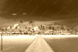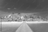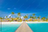 Beautiful beach with jetty at Maldives. Luxury travel, summer landscape with palm trees over blue tropical sea and white sand. Amazing beach landscape, tropical island resort and hotel, tranquil coast