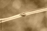 dangerous insect parasite mite crawls on the grass in the spring forest and crouches waiting for a victim to bite