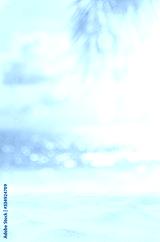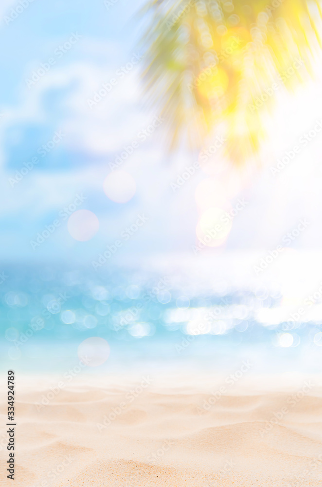 Blur beautiful nature green palm leaf on tropical beach with bokeh sun light wave abstract background.