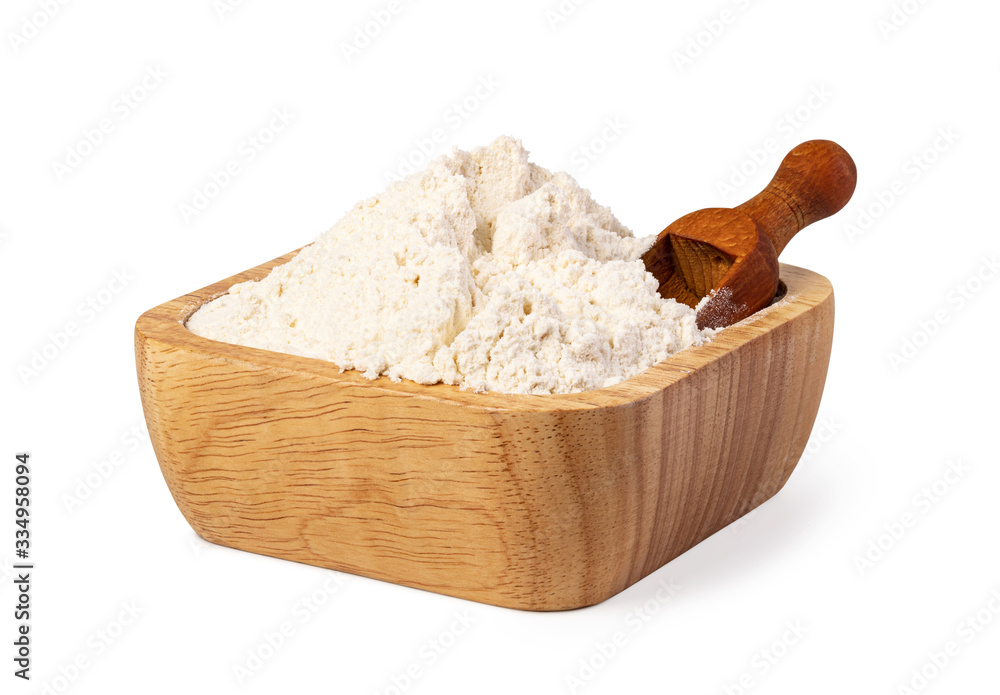 bowl of flour on white background