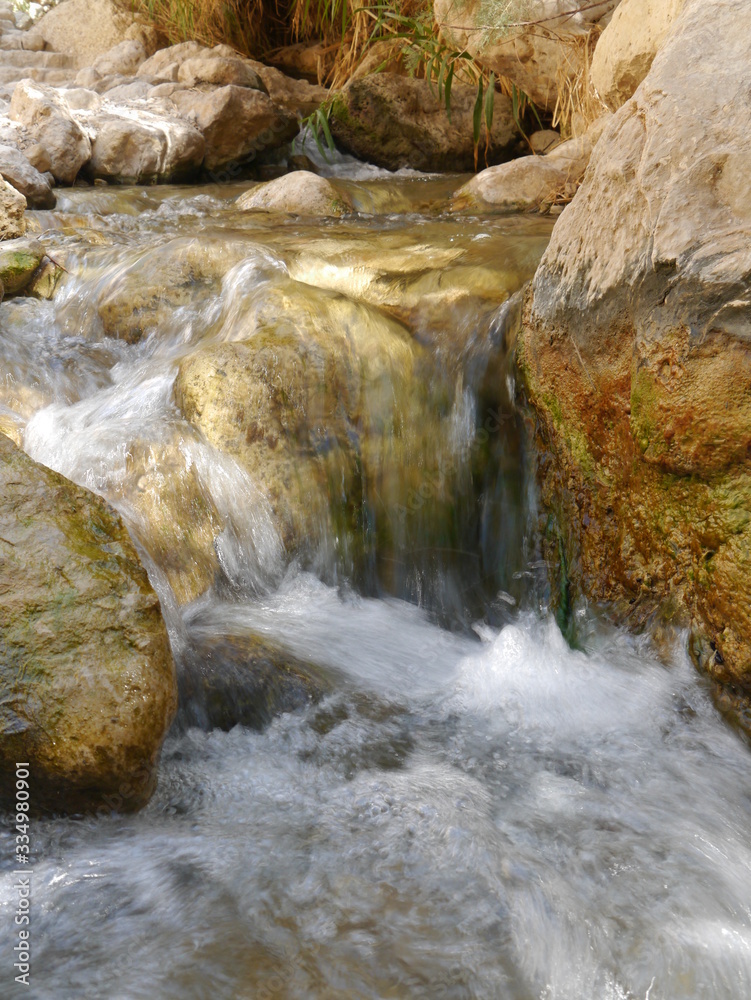 closeup of gently floating water over rocks, near Ein Gedi Nature Reserve