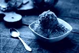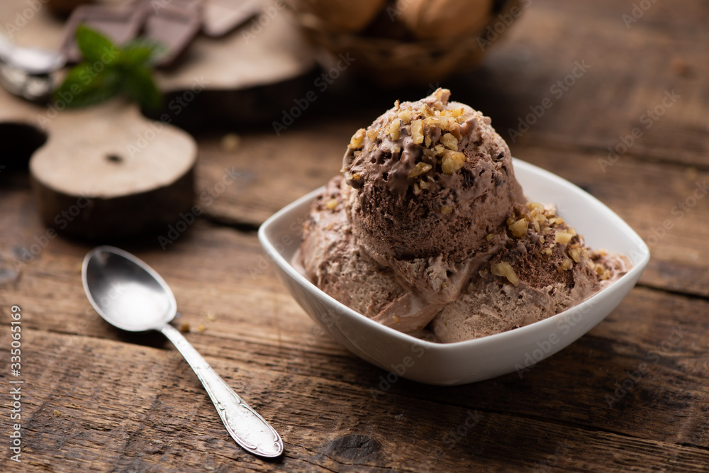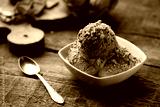 Scoops of Chocolate and Vanilla Ice Cream on Plate
