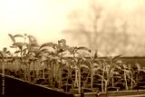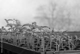 Seeds of cherry tomatoes harvested in container exposed to the sun in the greenhouse