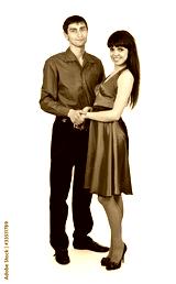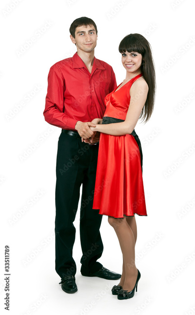 man and woman in a red dress