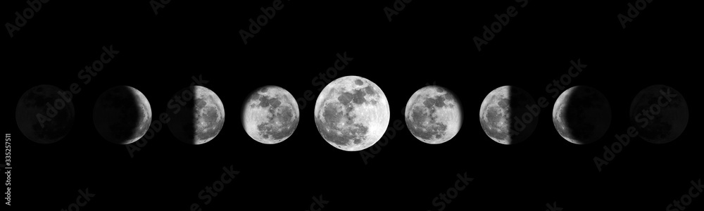 Moon phases night space astronomy and nature moon phases sphere shadow. The whole cycle from new moon to full moon.