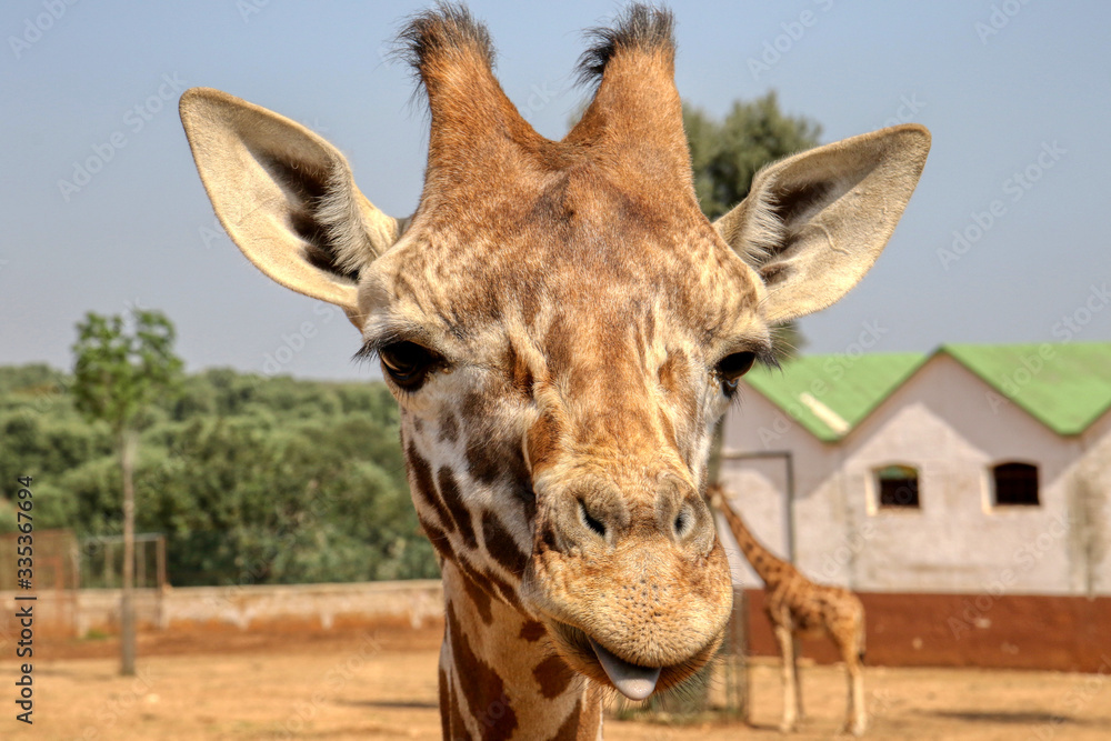 Funny face of a giraffe
