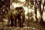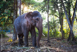 Elephant in the tropical jungles of India, Kerala. An elephant stands among the eaten bamboo stalks