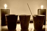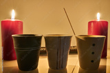 Three te cups with flames