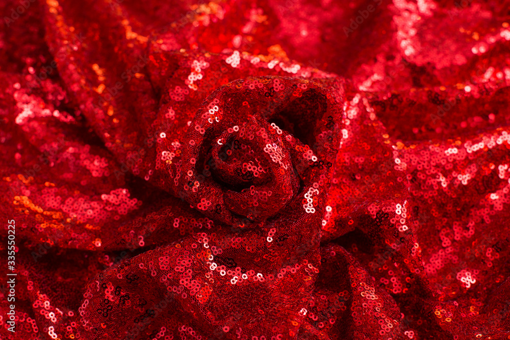 red shiny sequined pleated sequin fabric as background and texture