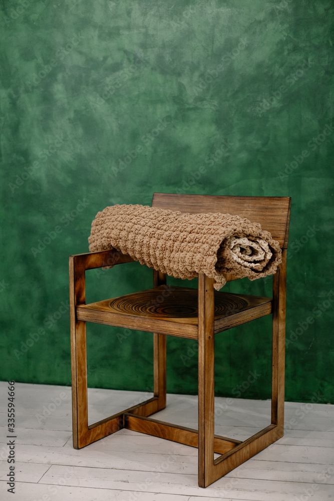 Knitted carpet or rug. Antique handmade carpet. Home hobby.